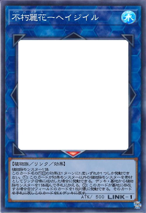| 植物族モンスター1体 このカード名の①②の効果は1ターンに1度いずれか1つしか発動できない。①:このカードが効果モンスター以外の植物族モンスターを素材としてリンク召喚に成功した場合に発動できる。デッキ・墓地から植物族モンスターを1体選んで手札に加える。②:このカードが墓地に存在する場合自分フィールドのカードを1枚対象に発動できる。そのカードを手札に戻しこのカードをEXデッキに戻す。 | |||