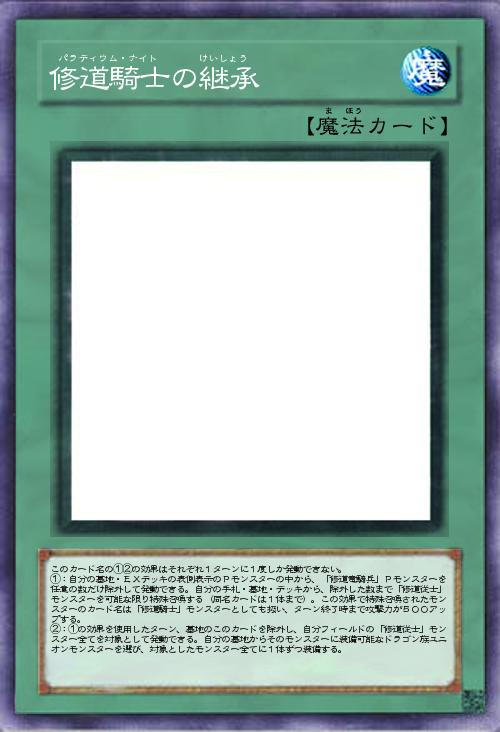 | このカード名の①②の効果はそれぞれ1ターンに1度しか発動できない。 ①:自分の墓地・EXデッキの表側表示のPモンスターの中から、「修道竜騎兵」Pモンスターを任意の数だけ除外して発動できる。自分の手札・墓地・デッキから、除外した数まで「修道従士」モンスターを可能な限り特殊召喚する(同名カードは1体まで)。この効果で特殊召喚されたモンスターのカード名は「修道騎士」モンスターとしても扱い、ターン終了時まで攻撃力が500アップする。 ②:①の効果を使用したターン、墓地のこのカードを除外し、自分フィールドの「修道従士」モンスター全てを対象として発動できる。自分の墓地からそのモンスターに装備可能なドラゴン族ユニオンモンスターを選び、対象としたモンスター全てに1体ずつ装備する。 | |||