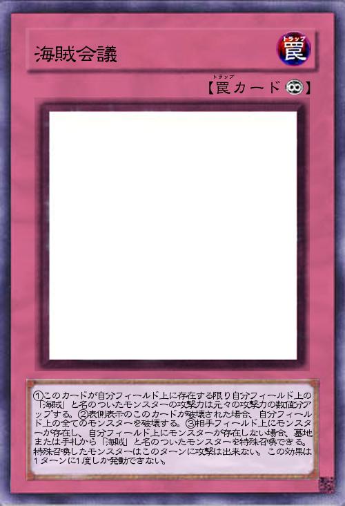 | ①このカードが自分フィールド上に存在する限り自分フィールド上の「海賊」と名のついたモンスターの攻撃力は元々の攻撃力の数値分アップする。②表側表示のこのカードが破壊された場合、自分フィールド上の全てのモンスターを破壊する。③相手フィールド上にモンスターが存在し、自分フィールド上にモンスターが存在しない場合、墓地または手札から「海賊」と名のついたモンスターを特殊召喚できる。特殊召喚したモンスターはこのターンに攻撃は出来ない。この効果は1ターンに1度しか発動できない。 | |||