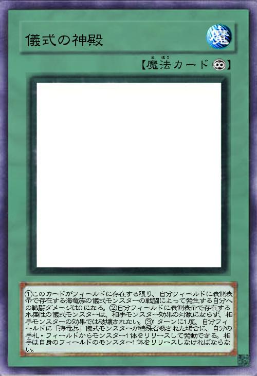 | ①このカードがフィールドに存在する限り、自分フィールドに表側表示で存在する海竜族の儀式モンスターの戦闘によって発生する自分への戦闘ダメージは0になる。②自分フィールドに表側表示で存在する水属性の儀式モンスターは、相手モンスター効果の対象にならず、相手モンスターの効果では破壊されない。③1ターンに1度、自分フィールドに「海竜兵」儀式モンスターが特殊召喚された場合に、自分の手札・フィールドからモンスター1体をリリースして発動できる。相手は自身のフィールドのモンスター1体をリリースしなければならない。 | |||