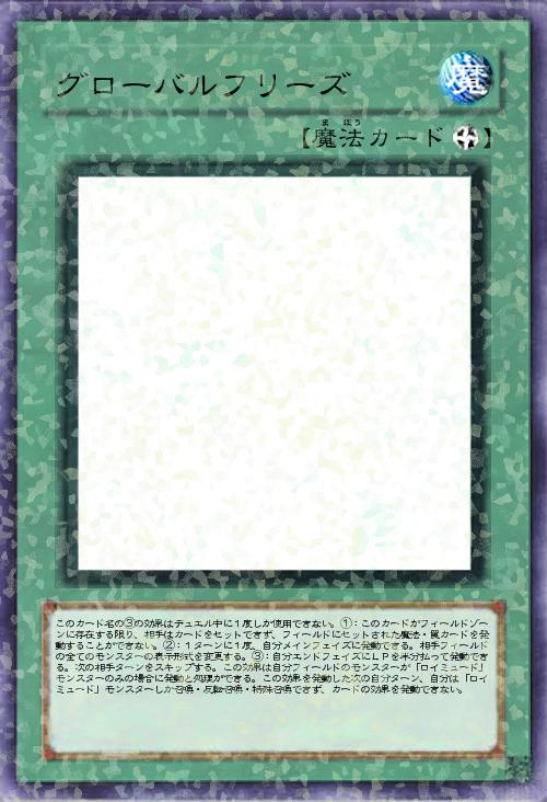 | このカード名の③の効果はデュエル中に1度しか使用できない。①:このカードがフィールドゾーンに存在する限り、相手はカードをセットできず、フィールドにセットされた魔法・罠カードを発動することができない。②:1ターンに1度、自分メインフェイズに発動できる。相手フィールドの全てのモンスターの表示形式を変更する。③:自分エンドフェイズにLPを半分払って発動できる。次の相手ターンをスキップする。この効果は自分フィールドのモンスターが「ロイミュード」モンスターのみの場合に発動と処理ができる。この効果を発動した次の自分ターン、自分は「ロイミュード」モンスターしか召喚・反転召喚・特殊召喚できず、カードの効果を発動できない。 | |||