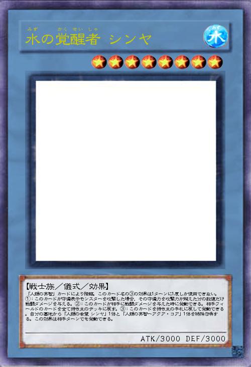 | 「人類の英智」カードにより降臨。このカード名の③の効果は1ターンに1度しか使用できない。①:このカードが守備表示モンスターを攻撃した場合、その守備力を攻撃力が超えた分の数値だけ戦闘ダメージを与える。②:このカードが相手に戦闘ダメージを与えた時に発動できる。相手フィールドのカードを全て持ち主のデッキに戻す。③:このカードを持ち主の手札に戻して発動できる。自分の墓地から「人類の希望 シンヤ」1体と「人類の英智ーアクア・コア」1体を特殊召喚する。この効果は相手ターンでも発動できる。 | |||