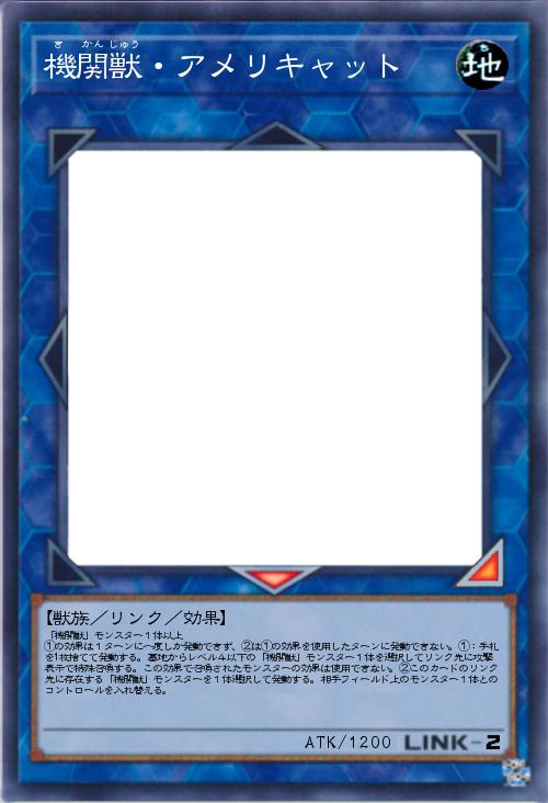 | 「機関獣」モンスター1体以上 ①の効果は1ターンに一度しか発動できず、②は①の効果を使用したターンに発動できない。①:手札を1枚捨てて発動する。墓地からレベル4以下の「機関獣」モンスター1体を選択してリンク先に攻撃表示で特殊召喚する。この効果で召喚されたモンスターの効果は使用できない。②このカードのリンク先に存在する「機関獣」モンスターを1体選択して発動する。相手フィールド上のモンスター1体とのコントロールを入れ替える。 | |||