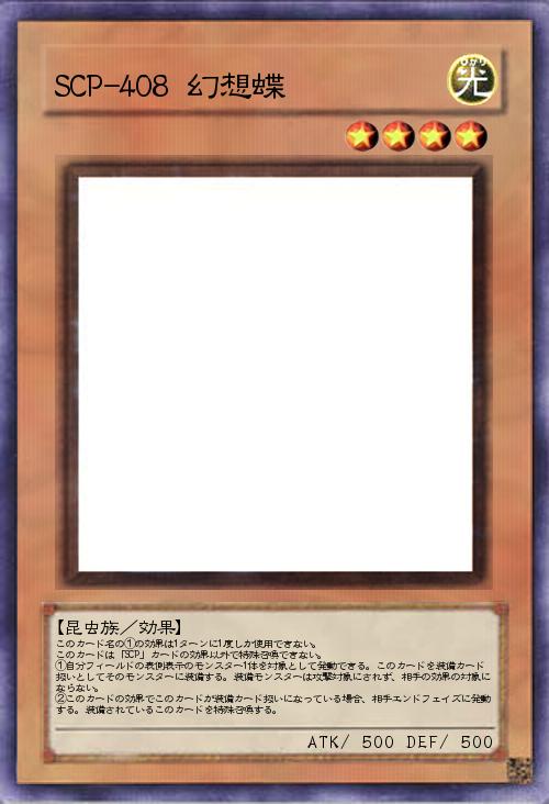 | このカード名の①の効果は1ターンに1度しか使用できない。 このカードは「SCP」カードの効果以外で特殊召喚できない。 ①自分フィールドの表側表示のモンスター1体を対象として発動できる。このカードを装備カード扱いとしてそのモンスターに装備する。装備モンスターは攻撃対象にされず、相手の効果の対象にならない。 ②このカードの効果でこのカードが装備カード扱いになっている場合、相手エンドフェイズに発動する。装備されているこのカードを特殊召喚する。 | |||