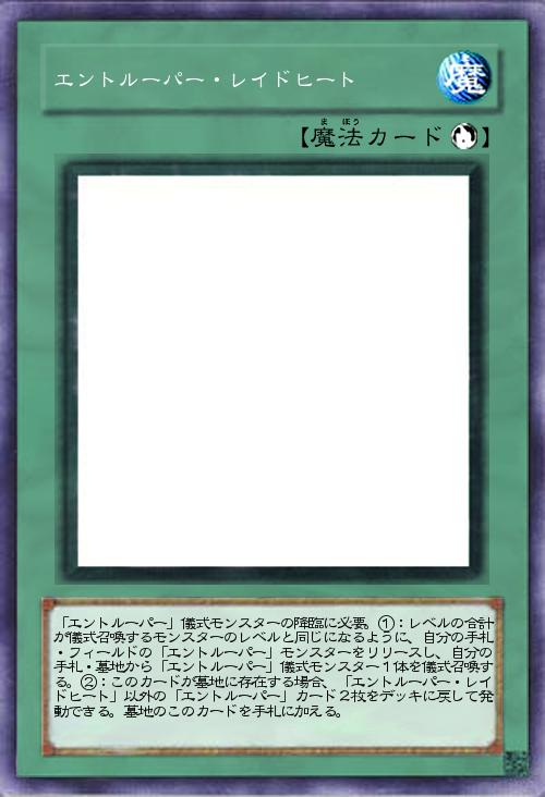 | 「エントルーパー」儀式モンスターの降臨に必要。①:レベルの合計が儀式召喚するモンスターのレベルと同じになるように、自分の手札・フィールドの「エントルーパー」モンスターをリリースし、自分の手札・墓地から「エントルーパー」儀式モンスター1体を儀式召喚する。②:このカードが墓地に存在する場合、「エントルーパー・レイドヒート」以外の「エントルーパー」カード2枚をデッキに戻して発動できる。墓地のこのカードを手札に加える。 | |||