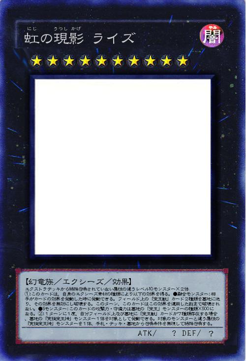 力を失った虹の巫女アイリスが、なぜか闇属性だった女神様とオーバーレイした姿。レインボーダークはユベルが作ったカードだけど、闇堕ち巫女様が邪悪なもの呼び出すの好きだからこんな効果になりました。別に虹の引力でもよかったりする。因みにこのカードにオーバーレイユニットを取り除く効果はない。」(2020-01-31 05:12)