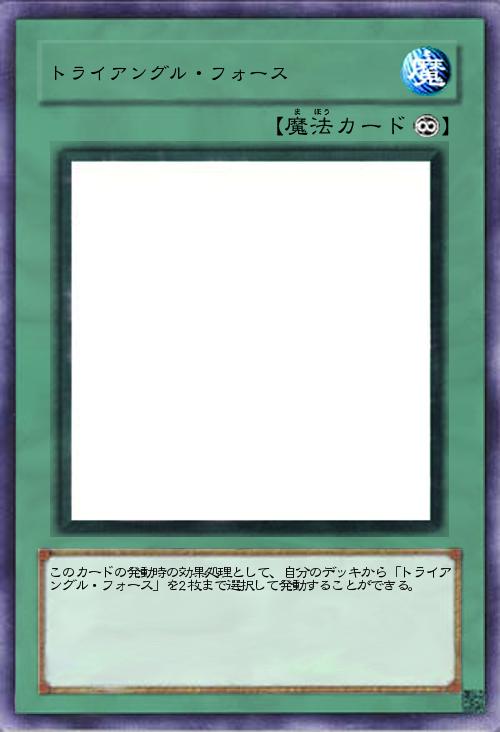 | このカードの発動時の効果処理として、自分のデッキから「トライアングル・フォース」を2枚まで選択して発動することができる。 | |||