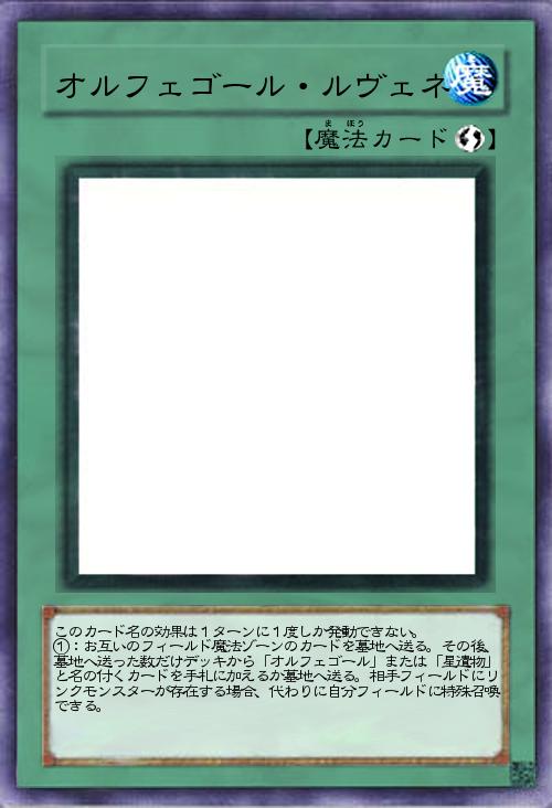 | このカード名の効果は1ターンに1度しか発動できない。 ①:お互いのフィールド魔法ゾーンのカードを墓地へ送る。その後、墓地へ送った数だけデッキから「オルフェゴール」または「星遺物」と名の付くカードを手札に加えるか墓地へ送る。相手フィールドにリンクモンスターが存在する場合、代わりに自分フィールドに特殊召喚できる。 | |||