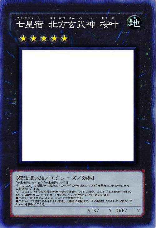 | 「七星宿」Xモンスター1体×「七星宿」Pモンスター1体 (1):このカードの攻撃力・守備力は、このカードがX素材としている「七星宿」モンスターのそれぞれの数値分アップする。 (2):このカードが「七星宿の北方神 玄武」を素材としている場合、このカードのX素材を1つ取り除いて発動できる。以下の内、1つを選んでその効果をターン終了時まで得る。 ●このカードは1度のバトルフェイズに2回まで攻撃できる。 ●このカードが戦闘で相手をモンスター破壊した場合に発動する。その破壊したモンスターの攻撃力分のダメージを相手に与える。 | |||