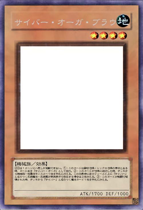 | ②③は1ターンに一度しか発動できない。①:このカードは融合召喚・シンクロ召喚の素材となる時、カード名を「サイバー・オーガ」として扱う。②:このカードが召喚に成功した時、デッキから機械族・地属性モンスター1体を手札に加える。この効果時に自分フィールド上に「サイバー」と名のつく永続魔法・永続罠が表側表示で存在する場合は2体加える。③:このカードが戦闘で破壊された時、デッキから「サイバー」と名のつく魔法カード1枚を手札に加える。 | |||
