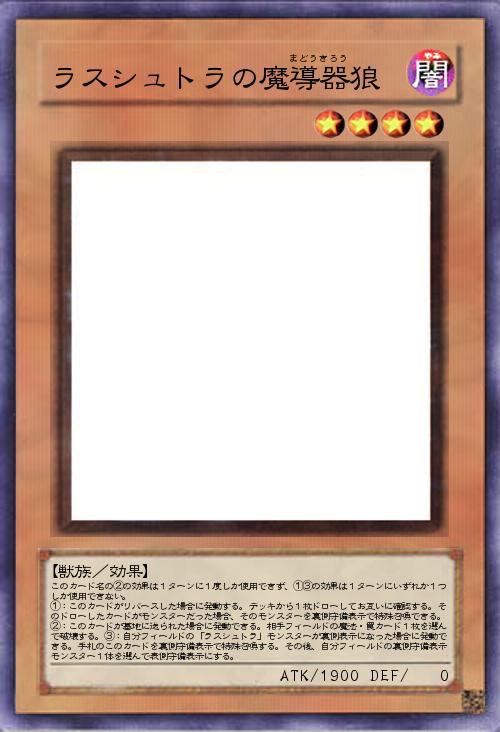 | このカード名の②の効果は1ターンに1度しか使用できず、①③の効果は1ターンにいずれか1つしか使用できない。 ①:このカードがリバースした場合に発動する。デッキから1枚ドローしてお互いに確認する。そのドローしたカードがモンスターだった場合、そのモンスターを裏側守備表示で特殊召喚できる。②:このカードが墓地に送られた場合に発動できる。相手フィールドの魔法・罠カード1枚を選んで破壊する。③:自分フィールドの「ラスシュトラ」モンスターが裏側表示になった場合に発動できる。手札のこのカードを裏側守備表示で特殊召喚する。その後、自分フィールドの裏側守備表示モンスター1体を選んで表側守備表示にする。 | |||