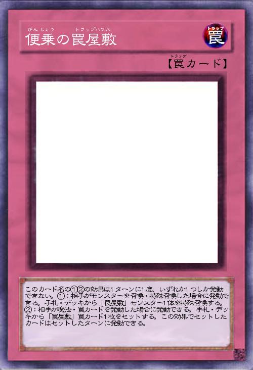 | このカード名の①②の効果は1ターンに1度、いずれか1つしか発動できない。①:相手がモンスターを召喚・特殊召喚した場合に発動できる。手札・デッキから「罠屋敷」モンスター1体を特殊召喚する。②:相手が魔法・罠カードを発動した場合に発動できる。手札・デッキから「罠屋敷」罠カード1枚をセットする。この効果でセットしたカードはセットしたターンに発動できる。 | |||