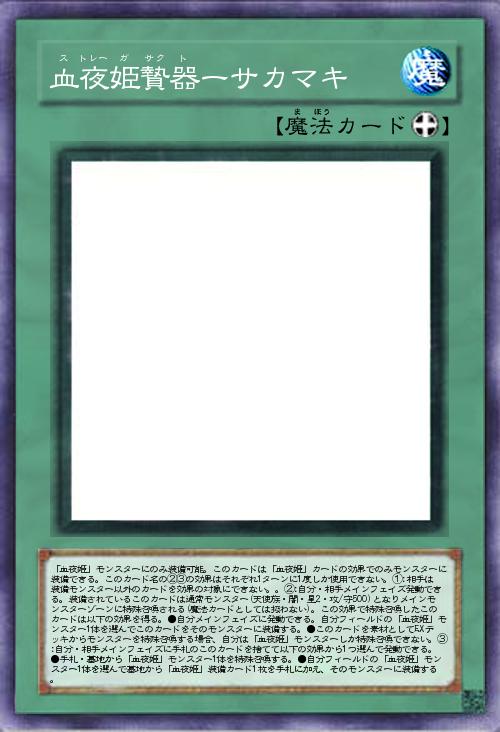 | 「血夜姫」モンスターにのみ装備可能。このカードは「血夜姫」カードの効果でのみモンスターに装備できる。このカード名の②③の効果はそれぞれ1ターンに1度しか使用できない。①:相手は装備モンスター以外のカードを効果の対象にできない。。②:自分・相手メインフェイズ発動できる。装備されているこのカードは通常モンスター(天使族・闇・星2・攻/守500)となりメインモンスターゾーンに特殊召喚される(魔法カードとしては扱わない)。この効果で特殊召喚したこのカードは以下の効果を得る。●自分メインフェイズに発動できる。自分フィールドの「血夜姫」モンスター1体を選んでこのカードをそのモンスターに装備する。●このカードを素材としてEXデッキからモンスターを特殊召喚する場合、自分は「血夜姫」モンスターしか特殊召喚できない。③:自分・相手メインフェイズに手札のこのカードを捨てて以下の効果から1つ選んで発動できる。●手 | |||