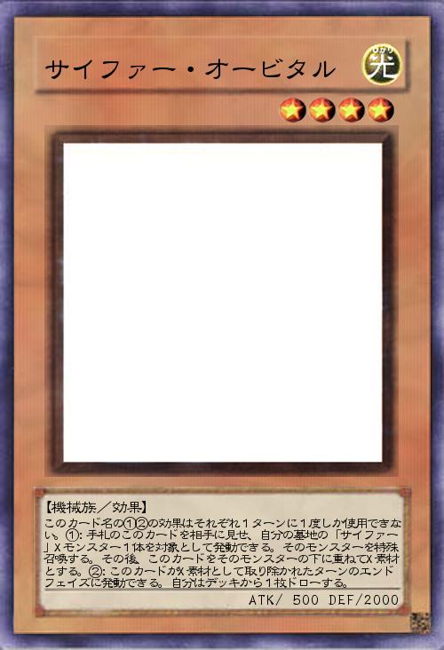 | このカード名の①②の効果はそれぞれ1ターンに1度しか使用できない。①:手札のこのカードを相手に見せ、自分の墓地の「サイファー」Xモンスター1体を対象として発動できる。そのモンスターを特殊召喚する。その後、このカードをそのモンスターの下に重ねてX素材とする。②:このカードがX素材として取り除かれたターンのエンドフェイズに発動できる。自分はデッキから1枚ドローする。 | |||