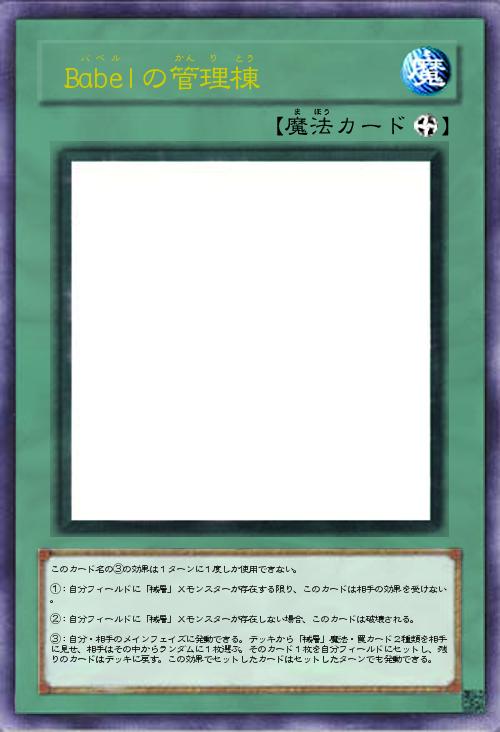 | このカード名の③の効果は1ターンに1度しか使用できない。 ①:自分フィールドに「械層」Xモンスターが存在する限り、このカードは相手の効果を受けない。 ②:自分フィールドに「械層」Xモンスターが存在しない場合、このカードは破壊される。 ③:自分・相手のメインフェイズに発動できる。デッキから「械層」魔法・罠カード2種類を相手に見せ、相手はその中からランダムに1枚選ぶ。そのカード1枚を自分フィールドにセットし、残りのカードはデッキに戻す。この効果でセットしたカードはセットしたターンでも発動できる。 | |||