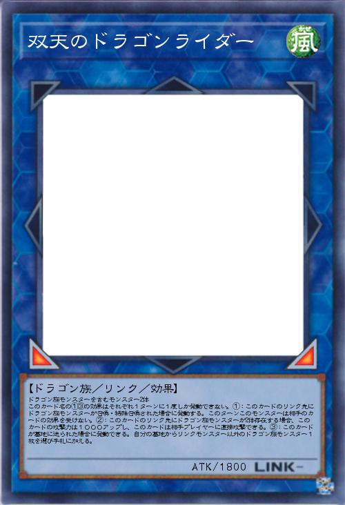 | ドラゴン族モンスターを含むモンスター2体 このカード名の①③の効果はそれぞれ1ターンに1度しか発動できない。①:このカードのリンク先にドラゴン族モンスターが召喚・特殊召喚された場合に発動する。このターンこのモンスターは相手のカードの効果を受けない。②:このカードのリンク先にドラゴン族モンスターが2体存在する場合、このカードの攻撃力は1000アップし、このカードは相手プレイヤーに直接攻撃できる。③:このカードが墓地に送られた場合に発動できる。自分の墓地からリンクモンスター以外のドラゴン族モンスター1枚を選び手札に加える。 | |||