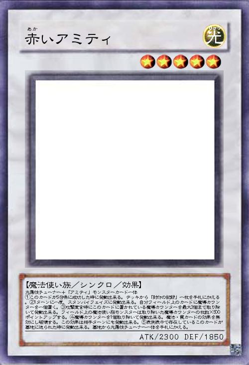 | 光属性チューナー+「アミティ」モンスターカード一体 ①このカードがS召喚に成功した時に発動出来る。デッキから「封印の記録」一枚を手札に加える。②1ターンに一度、スタンバイフェイズに発動出来る。自分フィールド上のカードに魔導カウンターを一個置く。③攻撃宣言時にこのカードに置かれている魔導カウンターを最大3個まで取り除いて発動出来る。フィールド上の魔法使い族モンスターは取り除いた魔導カウンターの枚数×500ポイントアップする。④魔導カウンターを1個取り除いて発動出来る。魔法・罠カードの効果を無効にし破壊する。この効果は相手ターンにも発動出来る。⑤表側表示で存在しているこのカードが墓地に送られた時に発動出来る。墓地から光属性チューナー一体を手札に加える。 | |||