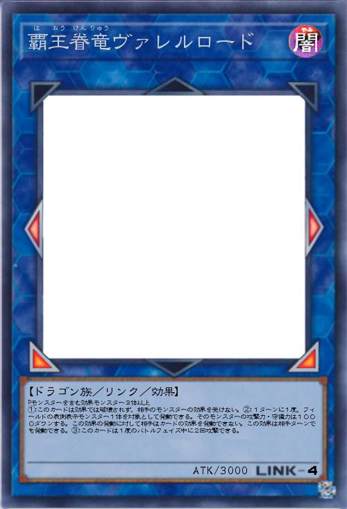 「覇王眷竜と化したヴァレルロード・ドラゴン。コントロール奪取効果がなくなった代わりに2回攻撃できるようになり、弱体化の数値が500から1000に、耐性は効果破壊と相手モンスターの効果全般を受けないものに変えてあります。」(2020-03-02 23:50)