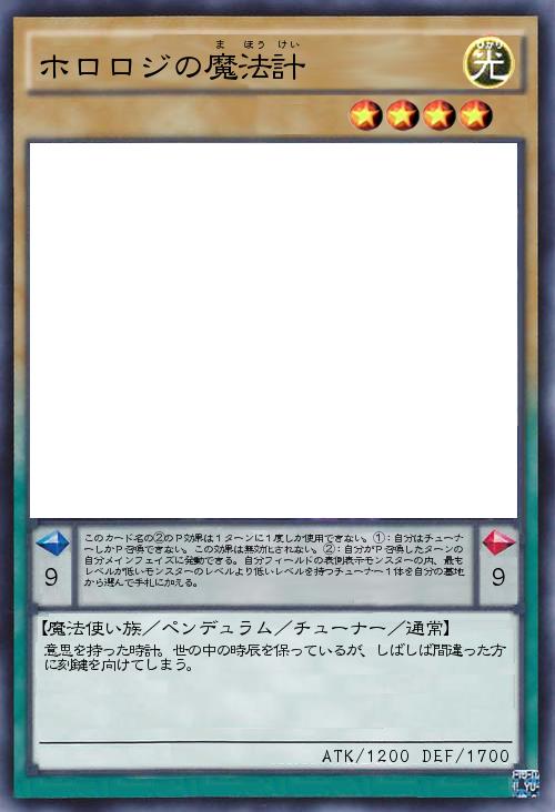 | このカード名の②のP効果は1ターンに1度しか使用できない。①:自分はチューナーしかP召喚できない。この効果は無効化されない。②:自分がP召喚したターンの自分メインフェイズに発動できる。自分フィールドの表側表示モンスターの内、最もレベルが低いモンスターのレベルより低いレベルを持つチューナー1体を自分の墓地から選んで手札に加える。 | |||