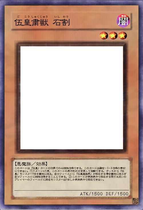 | このカードは「伍皇」カードの効果でのみ特殊召喚できる。このカードは融合・S・X召喚の素材にできない。①:1ターンに1度、このカードの表示形式を変更して発動できる。デッキから「伍皇」モンスター1体を墓地に送る。自分フィールドに「伍皇龍曲界」が存在する場合墓地に送らず自分フィールドに特殊召喚することとできる。②:このカードが表側表示で存在する限りお互いのプレイヤーのフィールドに同名モンスターは1体しか表側表示で存在できない。 | |||