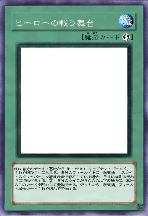 | ①:自分のデッキ・墓地から「E・HERO キャプテン・ゴールド」1枚を選び手札に加える。自分のフィールド上に「摩天楼 -スカイ・スクレイパー」が表側表示で存在している場合、手札に加える代わりに特殊召喚する。②:自分のライフが3000以下の場合に、墓地のこのカードを除外して発動できる。デッキから「摩天楼」フィールド魔法カード1枚を選んで発動する。 | |||