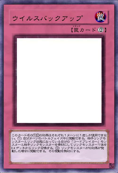 「コードブレイカー・ウイルスソードマンの効果名をカードにしました。相手のリンクモンスターとコードブレイカーでリンク召喚を行うカード。ターン1でリンクモンスターの効果の発動を無効にもできます。」(2020-03-12 23:09)