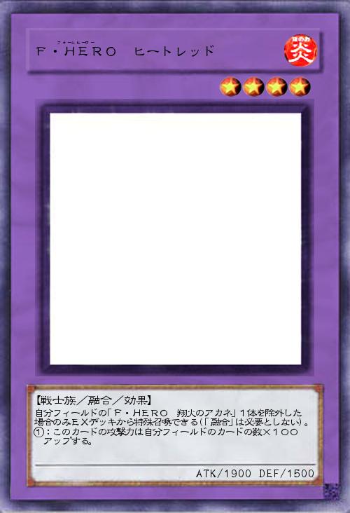 | 自分フィールドの「F・HERO 翔火のアカネ」1体を除外した 場合のみEXデッキから特殊召喚できる(「融合」は必要としない)。 ①:このカードの攻撃力は自分フィールドのカードの数×100 アップする。 | |||