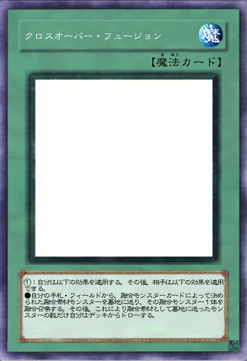 | ①:自分は以下の効果を適用する。その後、相手は以下の効果を適用できる。 ●自分の手札・フィールドから、融合モンスターカードによって決められた融合素材モンスターを墓地に送り、その融合モンスター1体を融合召喚する。その後、これにより融合素材として墓地に送ったモンスターの数だけ自分はデッキからドローする。 | |||