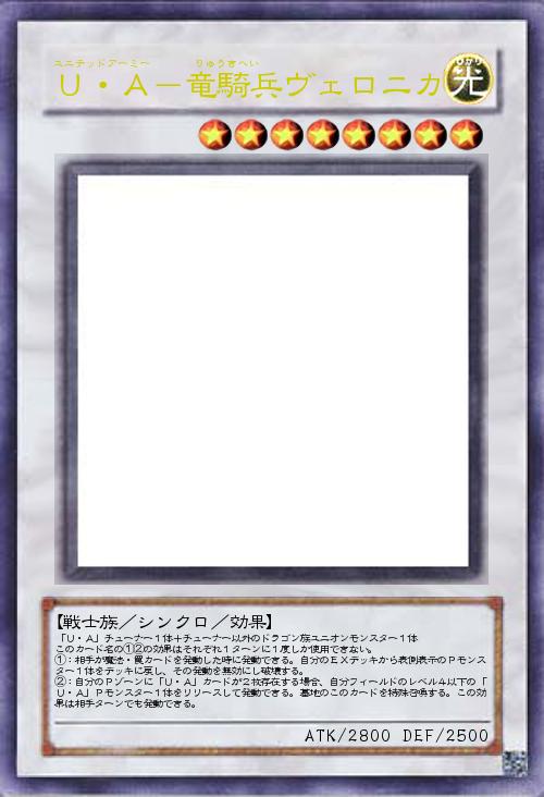 | 「U・A」チューナー1体+チューナー以外のドラゴン族ユニオンモンスター1体 このカード名の①②の効果はそれぞれ1ターンに1度しか使用できない。 ①:相手が魔法・罠カードを発動した時に発動できる。自分のEXデッキから表側表示のPモンスター1体をデッキに戻し、その発動を無効にし破壊する。 ②:自分のPゾーンに「U・A」カードが2枚存在する場合、自分フィールドのレベル4以下の「U・A」Pモンスター1体をリリースして発動できる。墓地のこのカードを特殊召喚する。この効果は相手ターンでも発動できる。 | |||