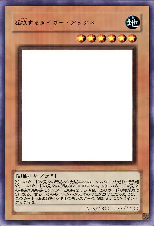 | ①このカードが元々の種族が鳥獣族以外のモンスターと戦闘を行う場合、このカードの元々の攻撃力は3000になる。②このカードが元々の種族が鳥獣族モンスターと戦闘を行う場合、このカードの攻撃力は0になる。さらにそのモンスターが元々の属性が風属性だった場合、このカードと戦闘を行う相手のモンスターの攻撃力は1000ポイントアップする。 | |||