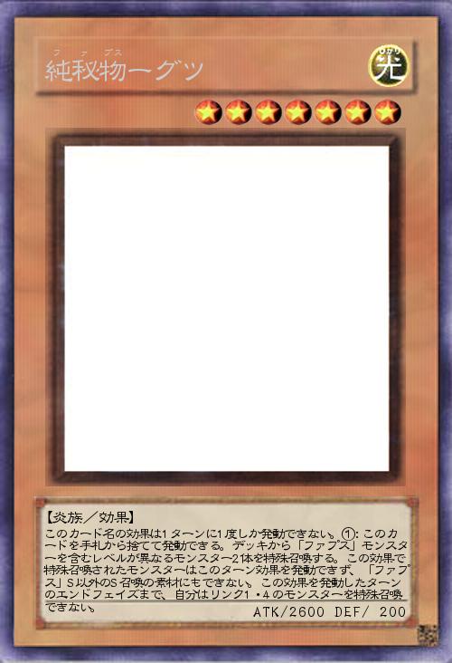 | このカード名の効果は1ターンに1度しか発動できない。①:このカードを手札から捨てて発動できる。デッキから「ファプス」モンスターを含むレベルが異なるモンスター2体を特殊召喚する。この効果で特殊召喚されたモンスターはこのターン効果を発動できず、「ファプス」S以外のS召喚の素材にもできない。この効果を発動したターンのエンドフェイズまで、自分はリンク1・4のモンスターを特殊召喚できない。 | |||