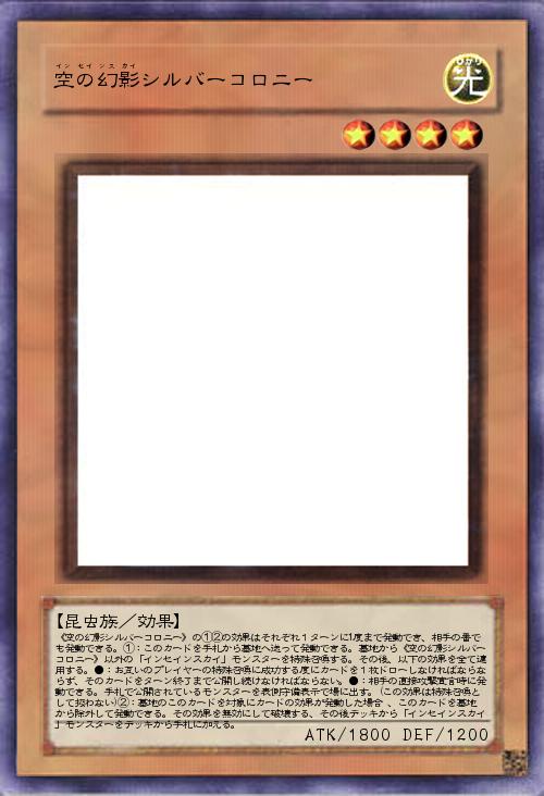 | 《空の幻影シルバーコロニー》の①②の効果はそれぞれ1ターンに1度まで発動でき、相手の番でも発動できる。①:このカードを手札から墓地へ送って発動できる。墓地から《空の幻影シルバーコロニー》以外の「インセインスカイ」モンスターを特殊召喚する。その後、以下の効果を全て適用する。●:お互いのプレイヤーの特殊召喚に成功する度にカードを1枚ドローしなければならならず、そのカードをターン終了まで公開し続けなければならない。●:相手の直接攻撃宣言時に発動できる。手札で公開されているモンスターを表側守備表示で場に出す。(この効果は特殊召喚として扱わない)②:墓地のこのカードを対象にカードの効果が発動した場合 、このカードを墓地から除外して発動できる。その効果を無効にして破壊する、その後デッキから「インセインスカイ」モンスターをデッキから手札に加える。 | |||