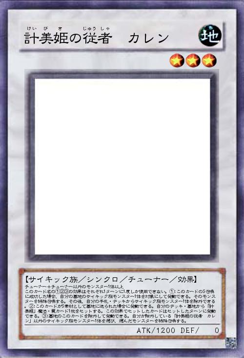 | チューナー+チューナー以外のモンスター1体以上 このカード名の①②③の効果はそれぞれ1ターンに1度しか使用できない。①:このカードのS召喚に成功した場合、自分の墓地のサイキック族モンスター1体を対象にして発動できる。そのモンスターを特殊召喚する。その後、自分の手札・デッキからサイキック族モンスター1体を除外できる。②:このカードがS素材として墓地に送られた場合に発動できる。自分のデッキ・墓地から「計美姫」魔法・罠カード1枚をセットする。この効果でセットしたカードはセットしたターンに発動できる。③:墓地のこのカードを除外して発動できる。自分が除外している「計美姫の従者 カレン」以外のサイキック族モンスター1体を選び、選んだモンスターを特殊召喚する。 | |||