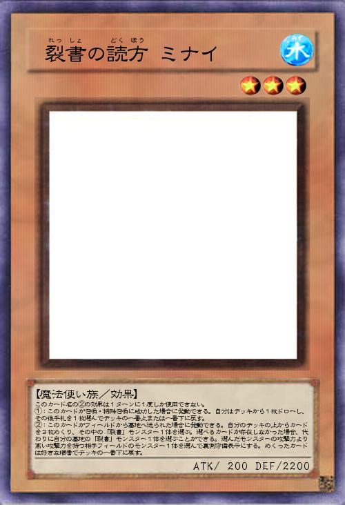 | このカード名の②の効果は1ターンに1度しか使用できない。 ①:このカードが召喚・特殊召喚に成功した場合に発動できる。自分はデッキから1枚ドローし、その後手札を1枚選んでデッキの一番上または一番下に戻す。 ②:このカードがフィールドから墓地へ送られた場合に発動できる。自分のデッキの上からカードを3枚めくり、その中の「裂書」モンスター1体を選ぶ。選べるカードが存在しなかった場合、代わりに自分の墓地の「裂書」モンスター1体を選ぶことができる。選んだモンスターの攻撃力より高い攻撃力を持つ相手フィールドのモンスター1体を選んで裏側守備表示にする。めくったカードは好きな順番でデッキの一番下に戻す。 | |||