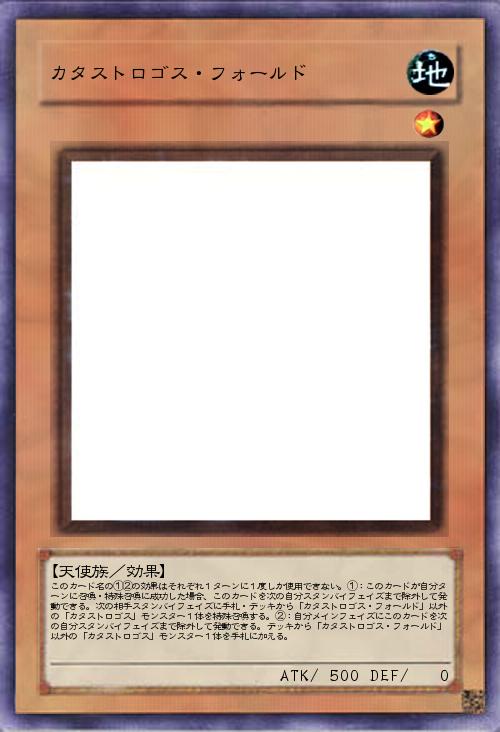 | このカード名の①②の効果はそれぞれ1ターンに1度しか使用できない。①:このカードが自分ターンに召喚・特殊召喚に成功した場合、このカードを次の自分スタンバイフェイズまで除外して発動できる。次の相手スタンバイフェイズに手札・デッキから「カタストロゴス・フォールド」以外の「カタストロゴス」モンスター1体を特殊召喚する。②:自分メインフェイズにこのカードを次の自分スタンバイフェイズまで除外して発動できる。デッキから「カタストロゴス・フォールド」以外の「カタストロゴス」モンスター1体を手札に加える。 | |||