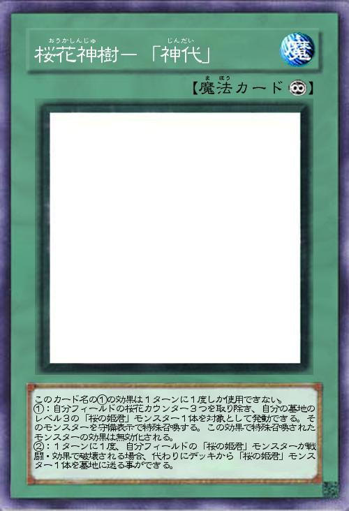 | このカード名の①の効果は1ターンに1度しか使用できない。 ①:自分フィールドの桜花カウンター3つを取り除き、自分の墓地のレベル3の「桜の姫君」モンスター1体を対象として発動できる。そのモンスターを守備表示で特殊召喚する。この効果で特殊召喚されたモンスターの効果は無効化される。 ②:1ターンに1度、自分フィールドの「桜の姫君」モンスターが戦闘・効果で破壊される場合、代わりにデッキから「桜の姫君」モンスター1体を墓地に送る事ができる。 | |||