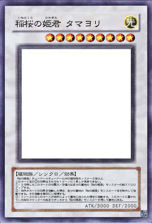 | 「桜の姫君」チューナー+チューナー以外の植物族モンスター2体以上 このカード名の②の効果はそれぞれ1ターンに1度しか使用できない。 ①:S召喚したこのカードの攻撃力・守備力は自分の墓地の「桜の姫君」モンスターの数×100アップする。 ②:相手がカードの効果を発動した場合、自分の墓地の「桜の姫君」モンスター1体を除外して発動できる。その発動を無効にし破壊する。 ③:フィールドのこのカードが相手によって墓地に送られた場合に発動する。このカードに置かれていた桜花カウンターの数までデッキから「桜の姫君」モンスターを選んで墓地に送る。 | |||