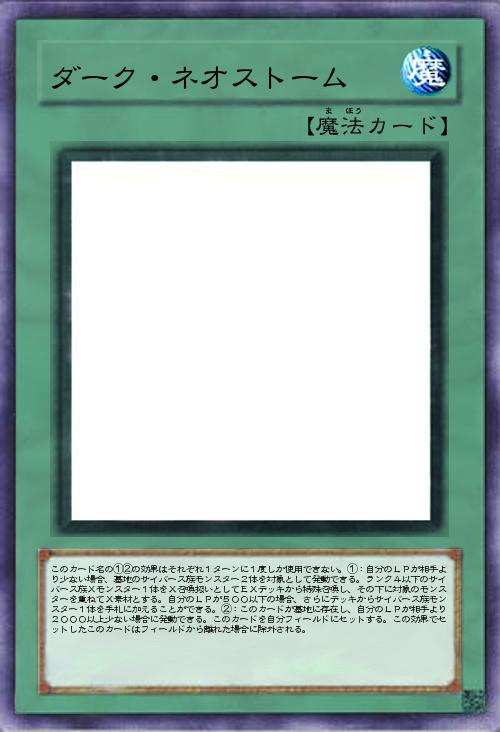 | このカード名の①②の効果はそれぞれ1ターンに1度しか使用できない。①:自分のLPが相手より少ない場合、墓地のサイバース族モンスター2体を対象として発動できる。ランク4以下のサイバース族Xモンスター1体をX召喚扱いとしてEXデッキから特殊召喚し、その下に対象のモンスターを重ねてX素材とする。自分のLPが500以下の場合、さらにデッキからサイバース族モンスター1体を手札に加えることができる。②:このカードが墓地に存在し、自分のLPが相手より2000以上少ない場合に発動できる。このカードを自分フィールドにセットする。この効果でセットしたこのカードはフィールドから離れた場合に除外される。 | |||