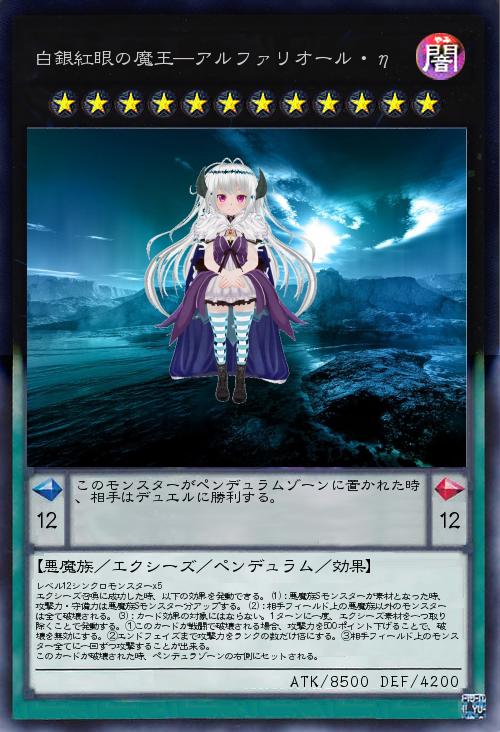| レベル12シンクロモンスターx5 エクシーズ召喚に成功した時、以下の効果を発動できる。(1):悪魔族Sモンスターが素材となった時、攻撃力・守備力は悪魔族Sモンスター分アップする。(2):相手フィールド上の悪魔族以外のモンスターは全て破壊される。(3):カード効果の対象にはならない。1ターンに一度、エクシーズ素材を一つ取り除くことで発動する。①このカードが戦闘で破壊される場合、攻撃力を500ポイント下げることで、破壊を無効にする。②エンドフェイズまで攻撃力をランクの数だけ倍にする。③相手フィールド上のモンスター全てに一回ずつ攻撃することが出来る。 このカードが破壊された時、ペンデュラゾーンの右側にセットされる。 | |||