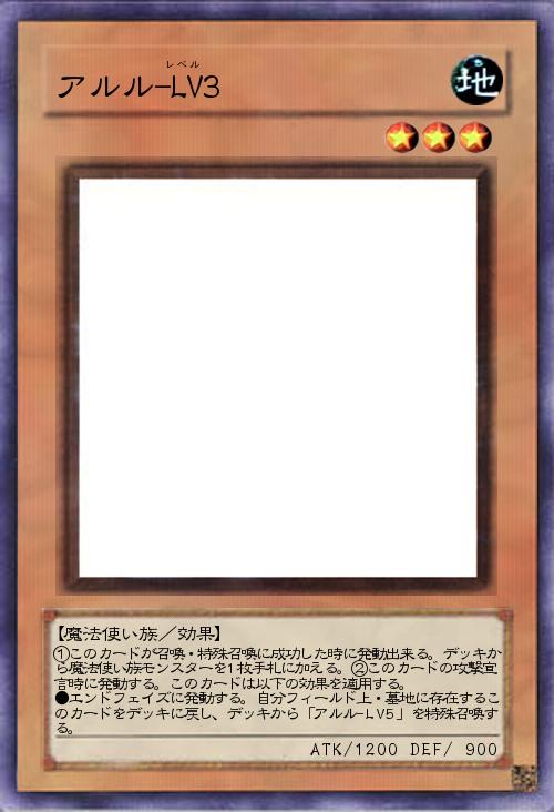 | ①このカードが召喚・特殊召喚に成功した時に発動出来る。デッキから魔法使い族モンスターを1枚手札に加える。②このカードの攻撃宣言時に発動する。このカードは以下の効果を適用する。 ●エンドフェイズに発動する。自分フィールド上・墓地に存在するこのカードをデッキに戻し、デッキから「アルル-LV5」を特殊召喚する。 | |||