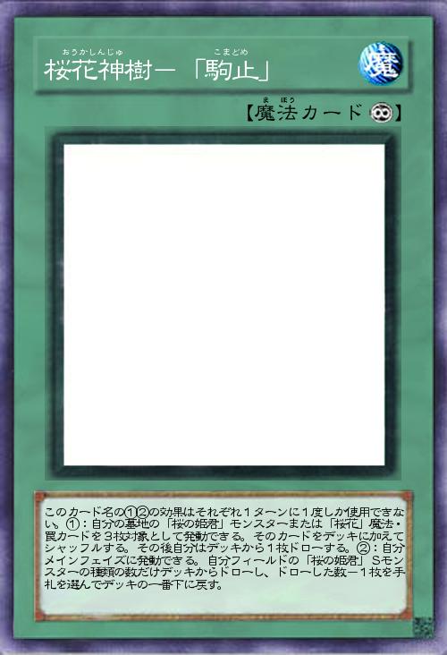 | このカード名の①②の効果はそれぞれ1ターンに1度しか使用できない。①:自分の墓地の「桜の姫君」モンスターまたは「桜花」魔法・罠カードを3枚対象として発動できる。そのカードをデッキに加えてシャッフルする。その後自分はデッキから1枚ドローする。②:自分メインフェイズに発動できる。自分フィールドの「桜の姫君」Sモンスターの種類の数だけデッキからドローし、ドローした数-1枚を手札を選んでデッキの一番下に戻す。 | |||