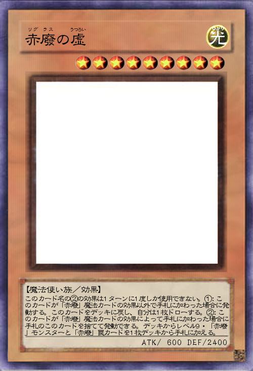 | このカード名の②の効果は1ターンに1度しか使用できない。①:このカードが「赤廢」魔法カードの効果以外で手札に加わった場合に発動する。このカードをデッキに戻し、自分は1枚ドローする。②:このカードが「赤廢」魔法カードの効果によって手札に加わった場合に手札のこのカードを捨てて発動できる。デッキからレベル9・「赤廢」モンスターと「赤廢」罠カードを1枚デッキから手札に加える。 | |||
