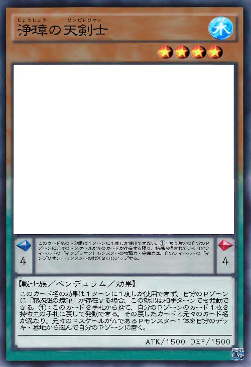 | このカード名の効果は1ターンに1度しか使用できず、自分のPゾーンに「霧濁怨の瘴印」が存在する場合、この効果は相手ターンでも発動できる。①:このカードを手札から捨て、自分のPゾーンのカード1枚を持ち主の手札に戻して発動できる。その戻したカードと元々のカード名が異なり、元々のPスケールが4であるPモンスター1体を自分のデッキ・墓地から選んで自分のPゾーンに置く。 | |||