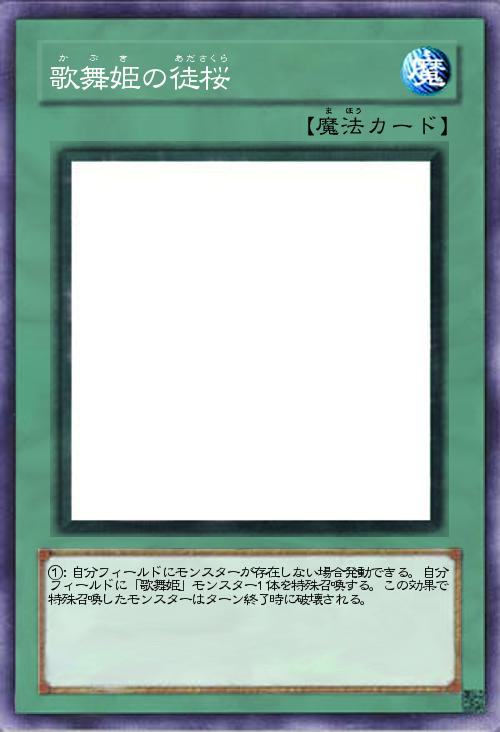 | ①:自分フィールドにモンスターが存在しない場合発動できる。自分フィールドに「歌舞姫」モンスター1体を特殊召喚する。この効果で特殊召喚したモンスターはターン終了時に破壊される。 | |||
