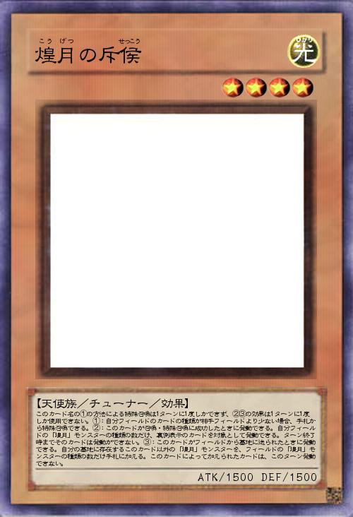 | このカード名の①の方法による特殊召喚は1ターンに1度しかできず、②③の効果は1ターンに1度しか使用できない。①:自分フィールドのカードの種類が相手フィールドより少ない場合、手札から特殊召喚できる。②:このカードが召喚・特殊召喚に成功したときに発動できる。自分フィールドの「煌月」モンスターの種類の数だけ、裏側表示のカードを対象として発動できる。ターン終了時までそのカードは発動ができない。③:このカードがフィールドから墓地に送られたときに発動できる。自分の墓地に存在するこのカード以外の「煌月」モンスターを、フィールドの「煌月」モンスターの種類の数だけ手札に加える。このカードによって加えられたカードは、このターン発動できない。 | |||