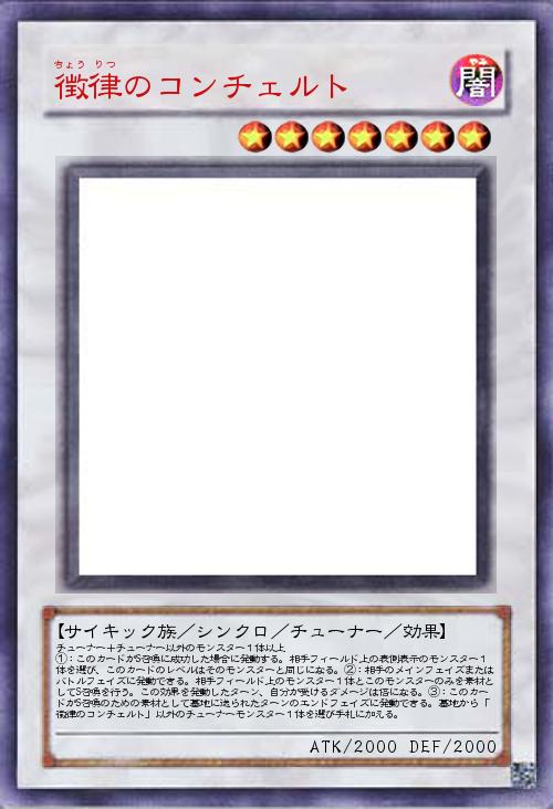 | チューナー+チューナー以外のモンスター1体以上 ①:このカードがS召喚に成功した場合に発動する。相手フィールド上の表側表示のモンスター1体を選び、このカードのレベルはそのモンスターと同じになる。②:相手のメインフェイズまたはバトルフェイズに発動できる。相手フィールド上のモンスター1体とこのモンスターのみを素材としてS召喚を行う。この効果を発動したターン、自分が受けるダメージは倍になる。③:このカードがS召喚のための素材として墓地に送られたターンのエンドフェイズに発動できる。墓地から「徴律のコンチェルト」以外のチューナーモンスター1体を選び手札に加える。 | |||
