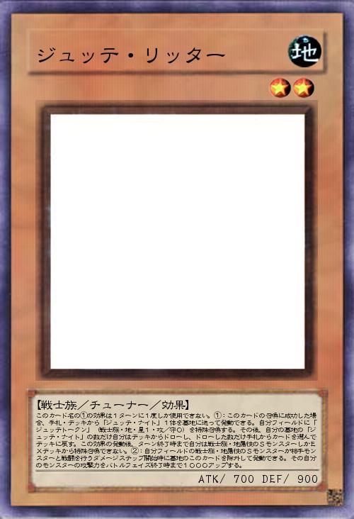 | このカード名の①の効果は1ターンに1度しか使用できない。①:このカードの召喚に成功した場合、手札・デッキから「ジュッテ・ナイト」1体を墓地に送って発動できる。自分フィールドに「ジュッテトークン」(戦士族・地・星1・攻/守0)を特殊召喚する。その後、自分の墓地の「ジュッテ・ナイト」の数だけ自分はデッキからドローし、ドローした数だけ手札からカードを選んでデッキに戻す。この効果の発動後、ターン終了時まで自分は戦士族・地属性のSモンスターしかEXデッキから特殊召喚できない。②:自分フィールドの戦士族・地属性のSモンスターが相手モンスターと戦闘を行うダメージステップ開始時に墓地のこのカードを除外して発動できる。その自分のモンスターの攻撃力をバトルフェイズ終了時まで1000アップする。 | |||