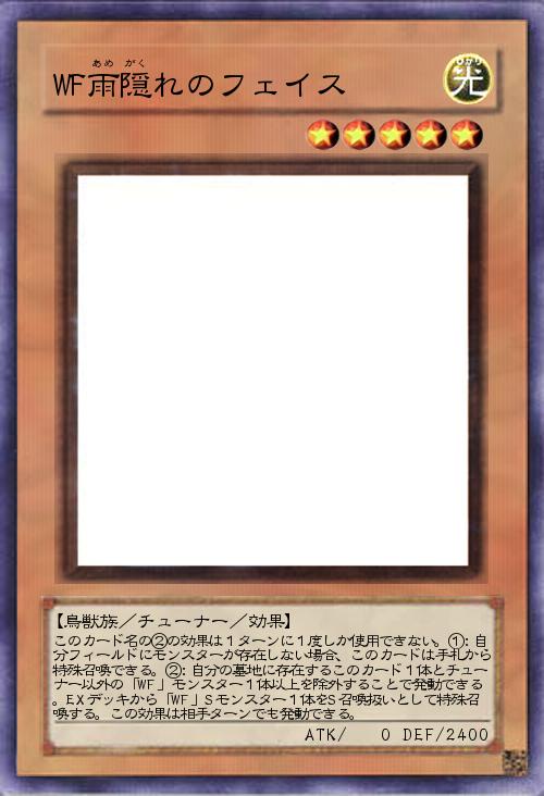 | このカード名の②の効果は1ターンに1度しか使用できない。①:自分フィールドにモンスターが存在しない場合、このカードは手札から特殊召喚できる。②:自分の墓地に存在するこのカード1体とチューナー以外の「WF」モンスター1体以上を除外することで発動できる。EXデッキから「WF」Sモンスター1体をS召喚扱いとして特殊召喚する。この効果は相手ターンでも発動できる。 | |||