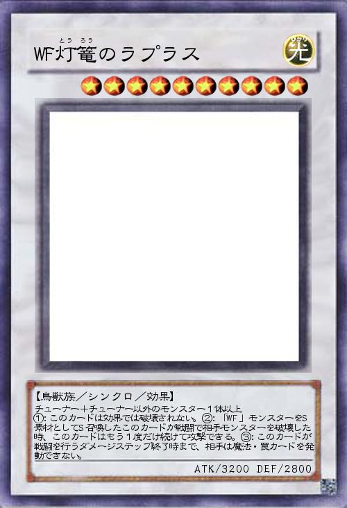 「レベル10のWFシンクロモンスター。効果破壊耐性と戦闘了時の魔法・罠の発動封じ、WFのみを素材にしてシンクロ召喚している時に限り、再攻撃ができます。」(2020-05-04 23:23)
