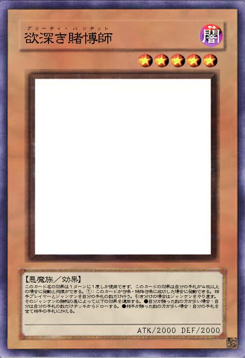 実にグリーディーな上級悪魔族。召喚・SS時に自身の手札をすべてベットし、じゃんけんを行う博打効果。勝ち数が多い場合には、はった額だけ手札を得られるものの、負ければはった額をすべて相手に取られてしまうという効果。最低ベットは手札4枚と結構、軍資金が必要なのでまさしく大勝か破滅の二択…。